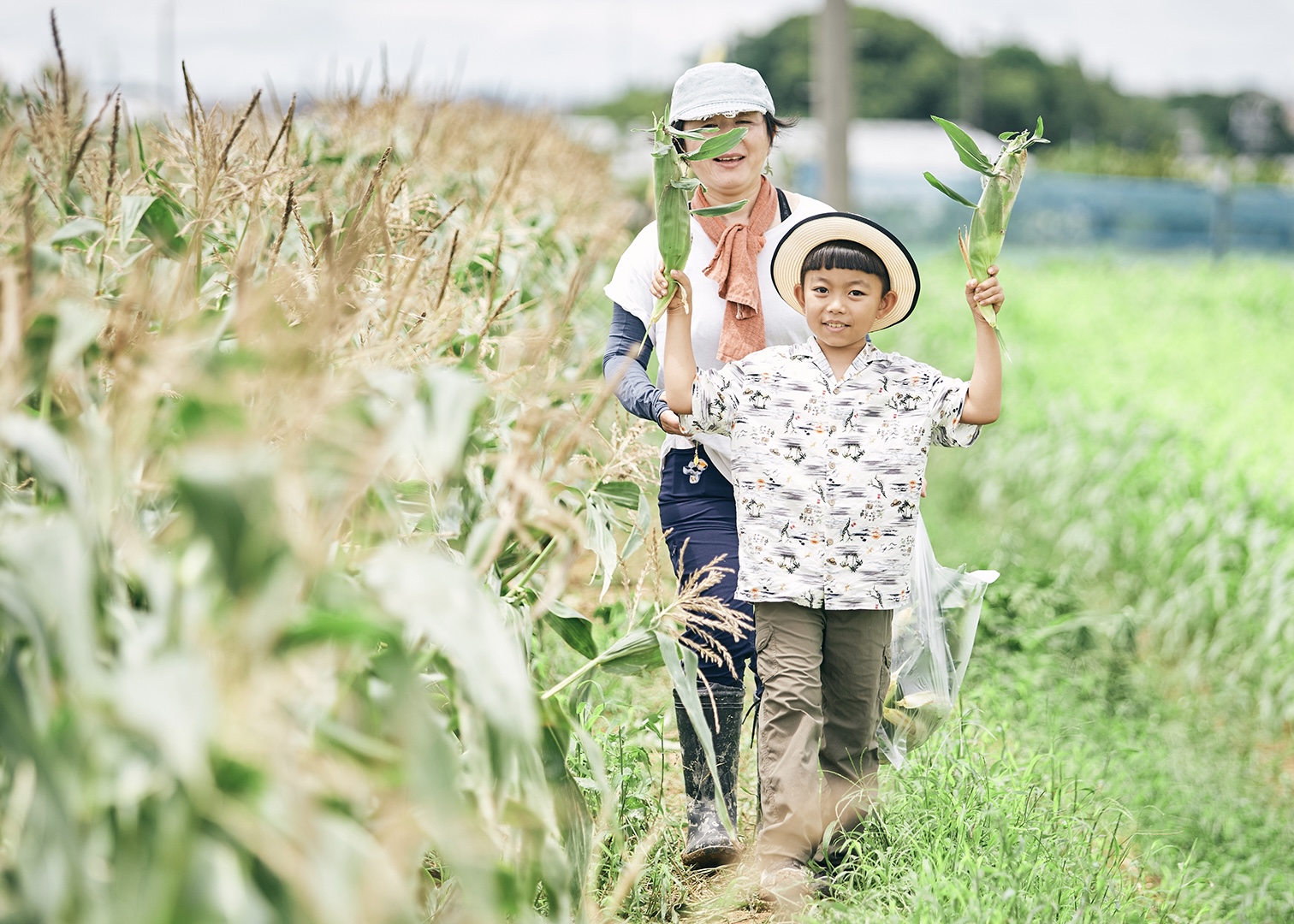 とうもろこしをもぎ取って、うずらいもを掘り出そう!