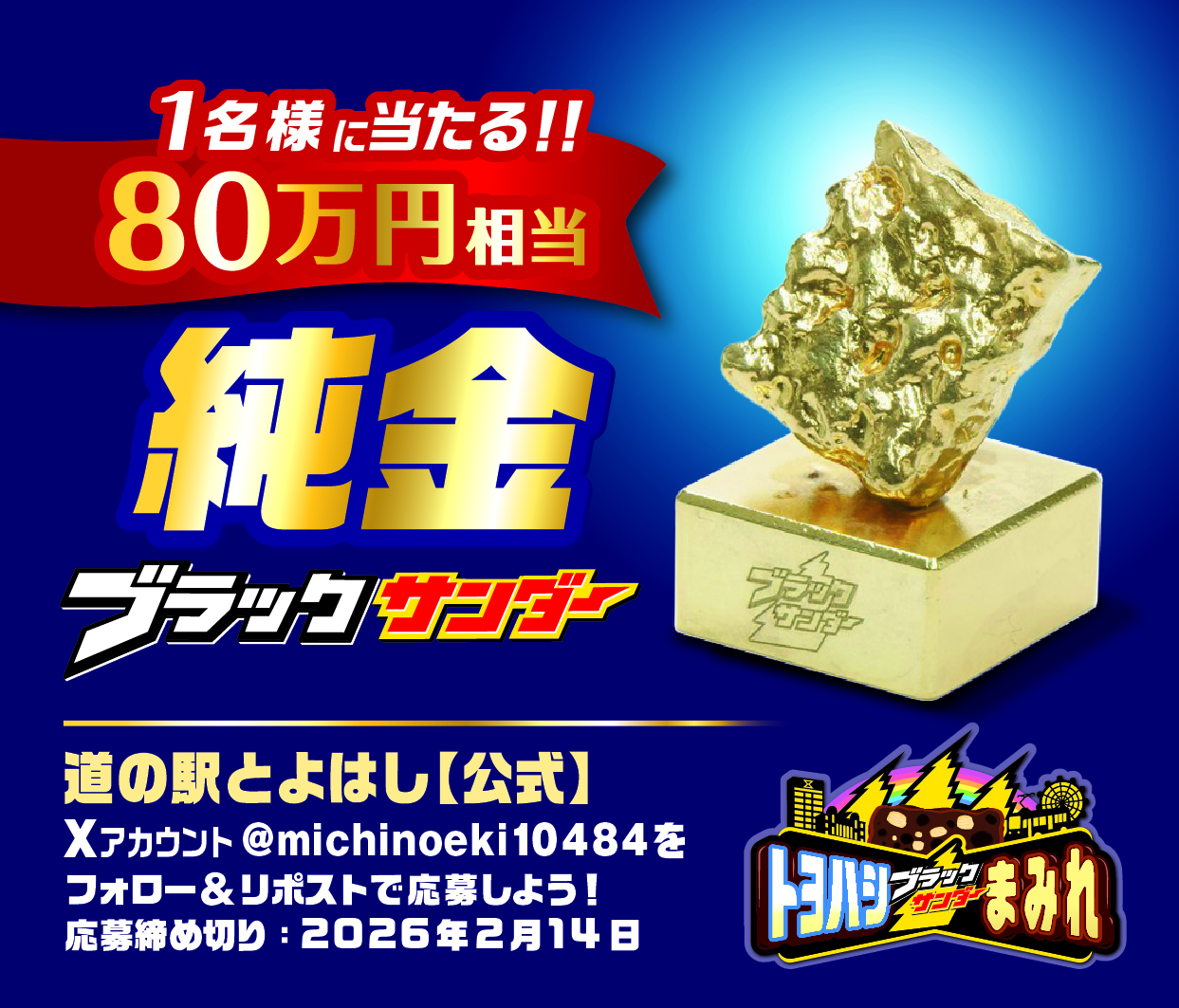 本企画の開催を記念して、80万円相当の純金ブラックサンダーの置物が当たるフォロー&リポストキャンペーンをX(旧Twitter)にて開催します。