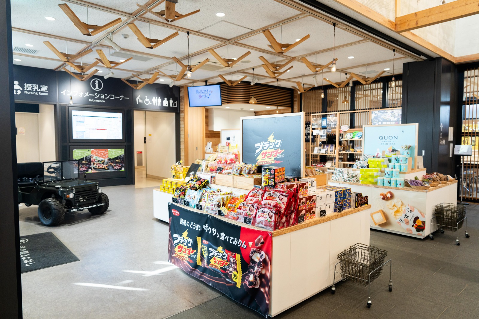 とよはしSTORE(インフォメーション)では、レンタサイクルの受付や道の駅とよはしのブランド芋「うずらいも」のキャラクターグッズ、地元のお土産などを販売しています。
